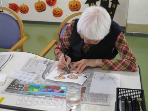 本日足湯に行かない留守番の方は、大江山園で絵と手紙の会にじいろさんと作品作りを楽しみました🌈