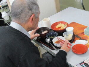 今日は利用者様のリクエストで、横越下芸能保存会様の伝統ある獅子舞や踊りの様子を観ました。