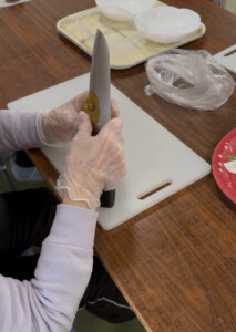 キウイをベテラン主婦の皆さんから皮むき、カットをしてもらい下準備完了!!