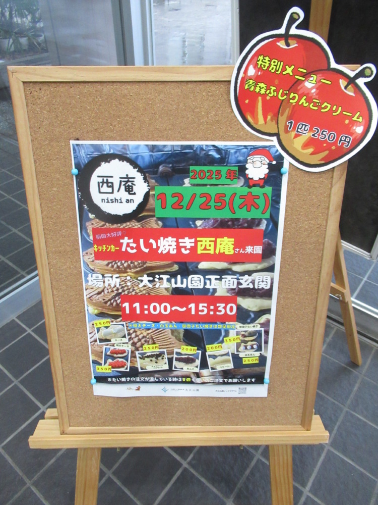 大江山正面玄関前には、甘~い甘~いこの時期に食べたくなるキッチンカーたい焼き西餡さんが来てくださいました。