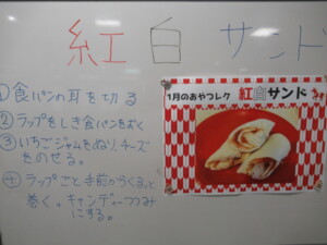 そうなんです、いちごの赤と、チーズの白で紅白サンドです😊