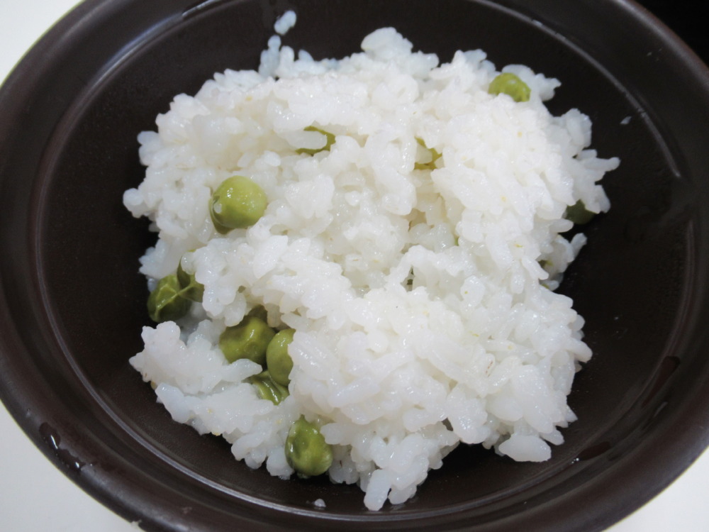 「今日は節分で豆まきだから豆ごはんです。」