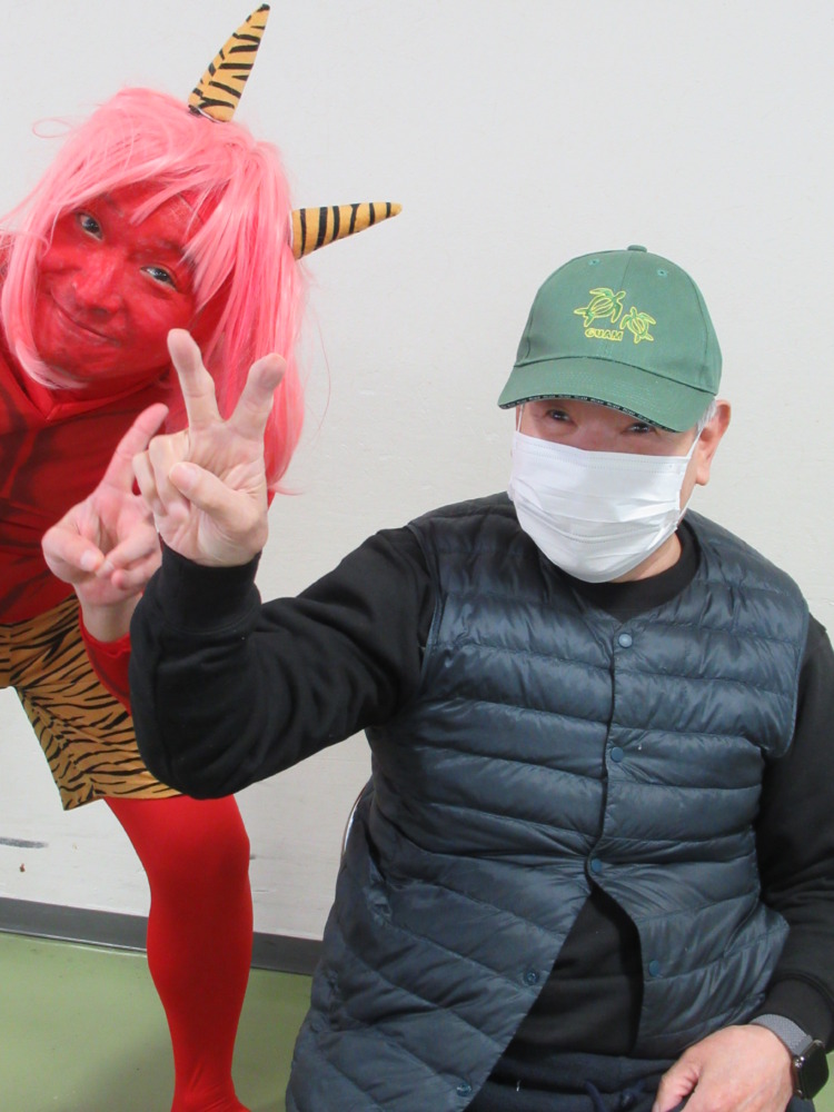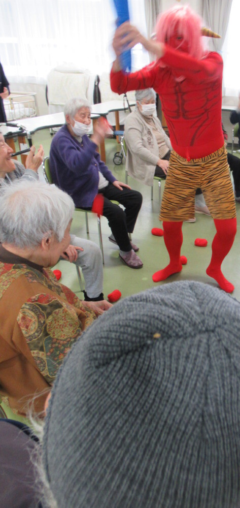 「あらぁ~、豆まきなのね。追い払わなきゃ。お昼ご飯も美味しそう。」と、おっしゃり召し上がられました。
