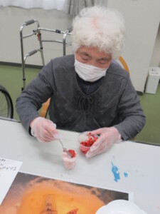 明日はホワイトデーという事で、今日のレクはホワイトデーパフェ作りを行いました♪