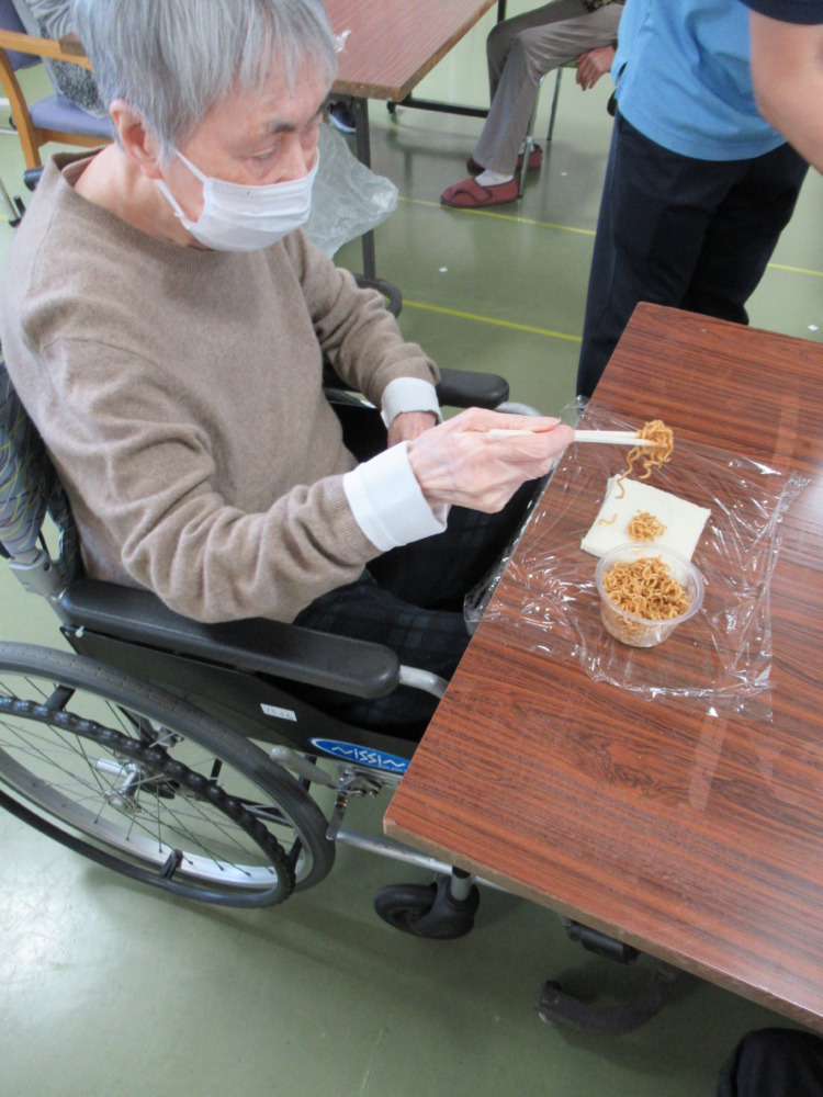 召し上がられると「熱さも丁度良いし、味も丁度良い。」「焼きそばが美味しい。」「簡単に作れるんだね。」と、おやつ時間に召し上がられました。