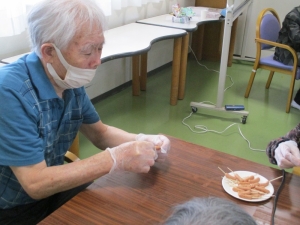 そして今日のデイケアは、昨日に続きおやつレクでミニミニアメリカンドッグ作りを行いました🐶