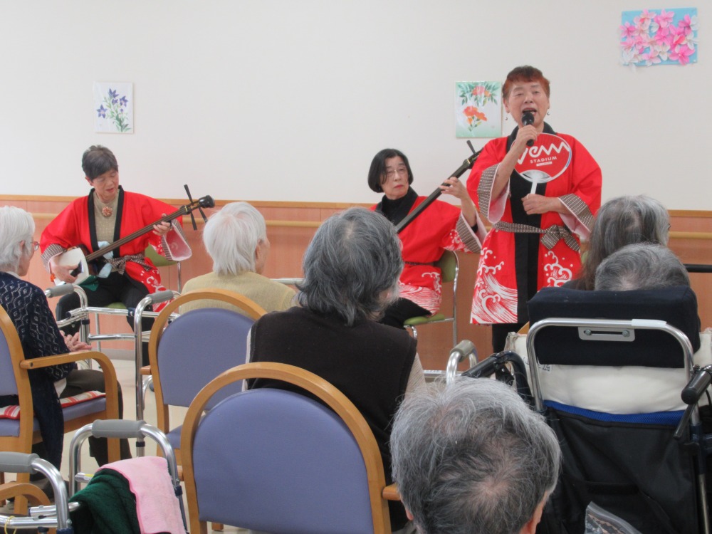 本日は入所棟で三味線ボランティア【椿の会】さんが演奏してくださいました🎵 迫力のある三味線の音と、…