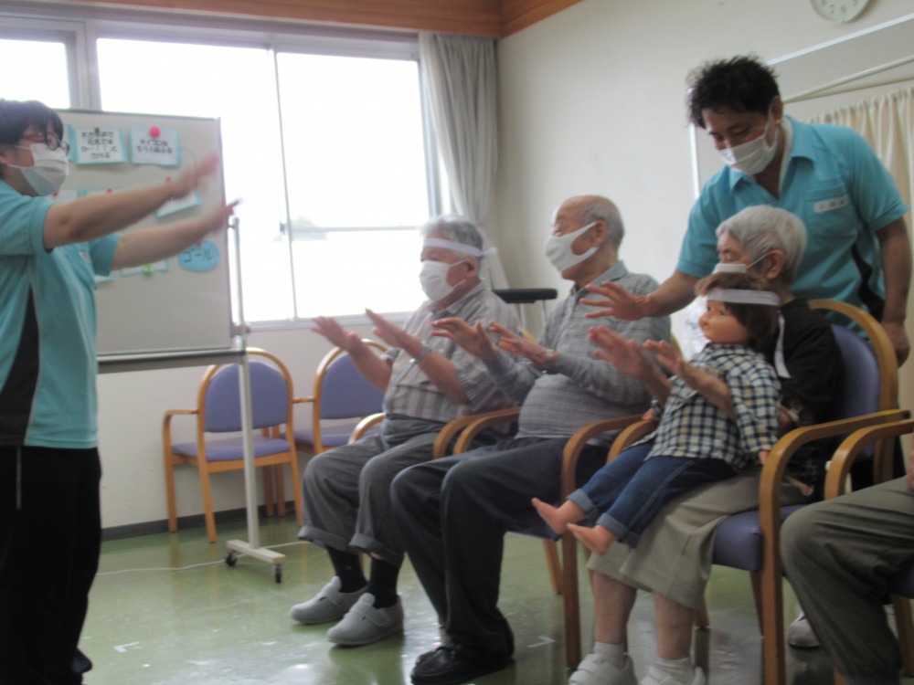 今日のレクは玉送りゲームを行いました! 玉といっても、色々な物を送って頂きます☺ アヒルに栗に、…