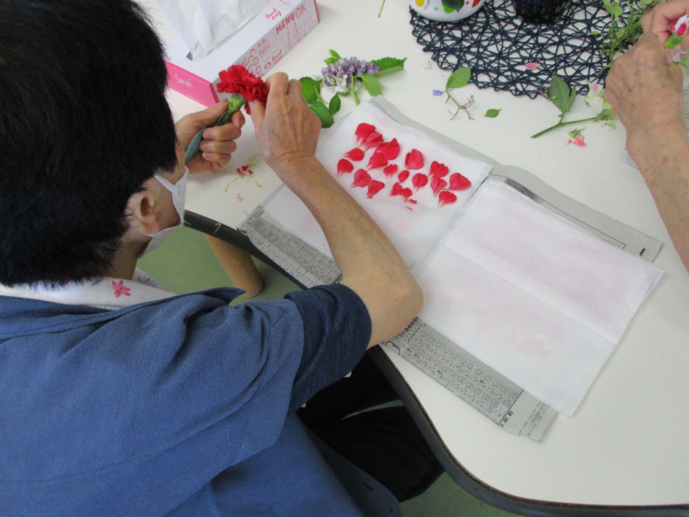 【デイケア】押し花🌼・体操の時間♪・7月のぬりえ