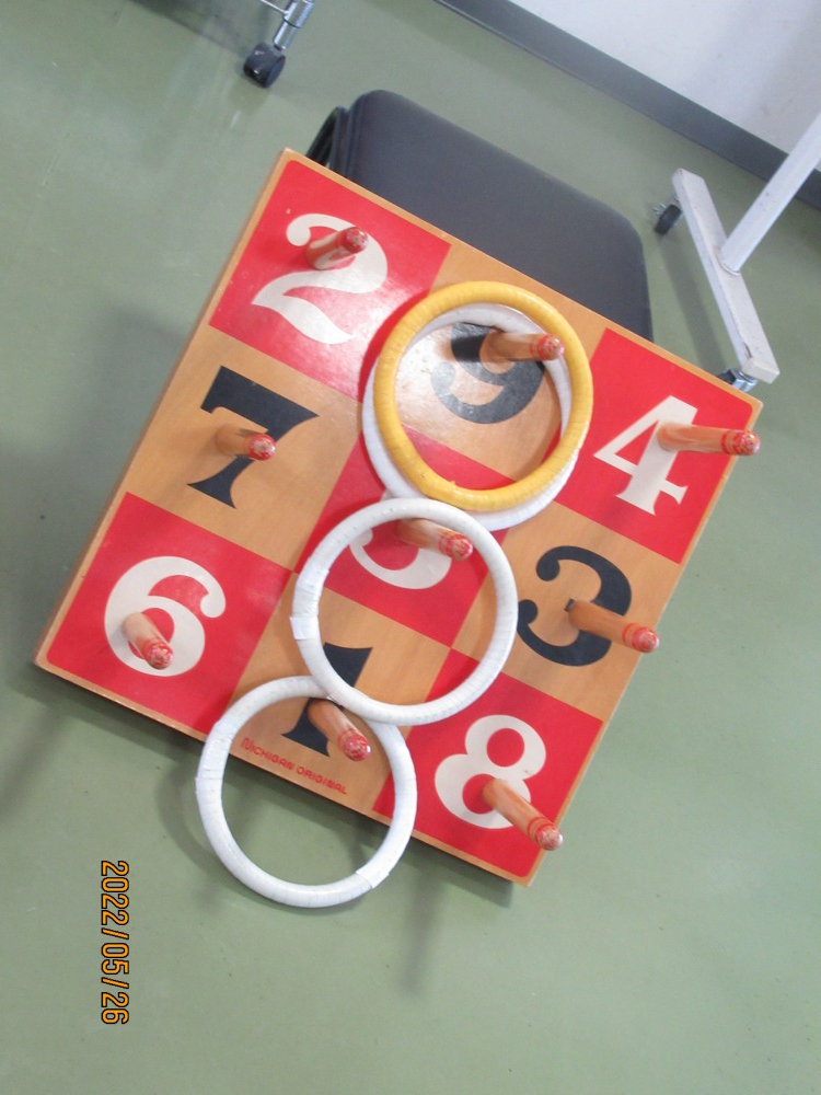 皆さんこんにちは😊 昨日は、わなげ大会を行いました! 投げる輪は、白色が3本、黄色が1本の計4本。…