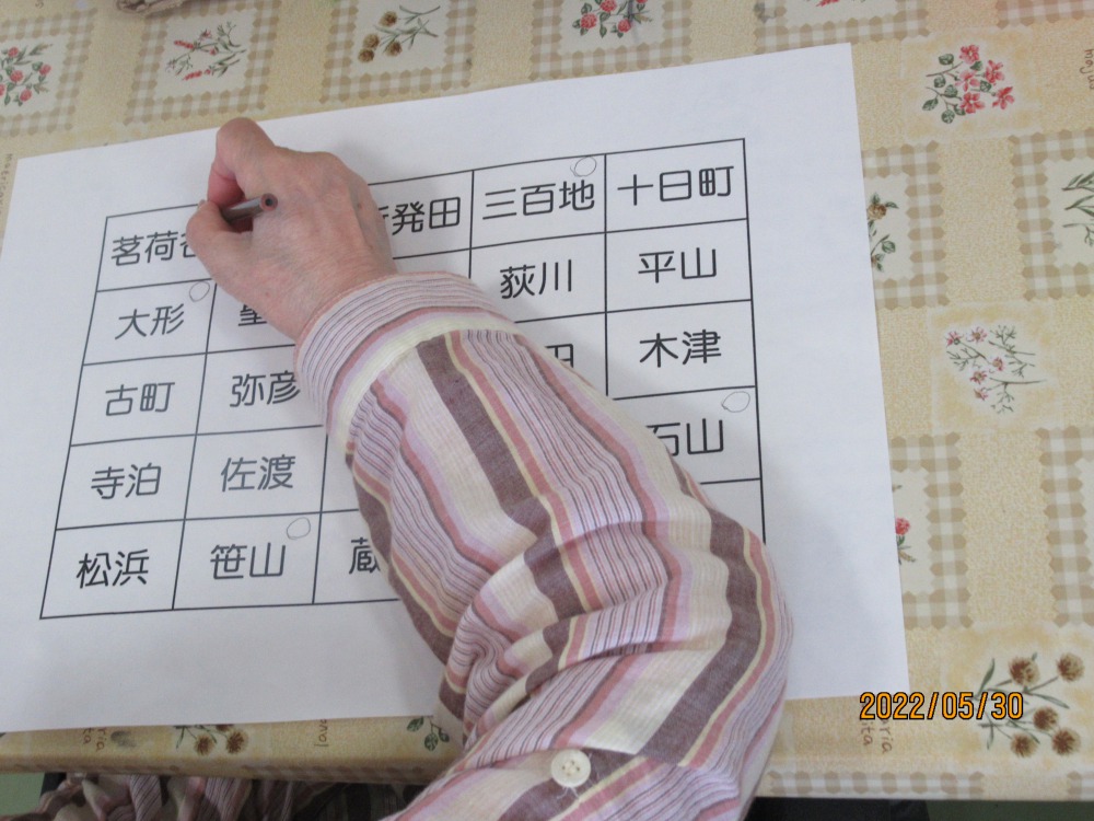 今日は地名ビンゴを行いました♪ ご近所の地名も多く入ったビンゴです☺ いしやま!と、…