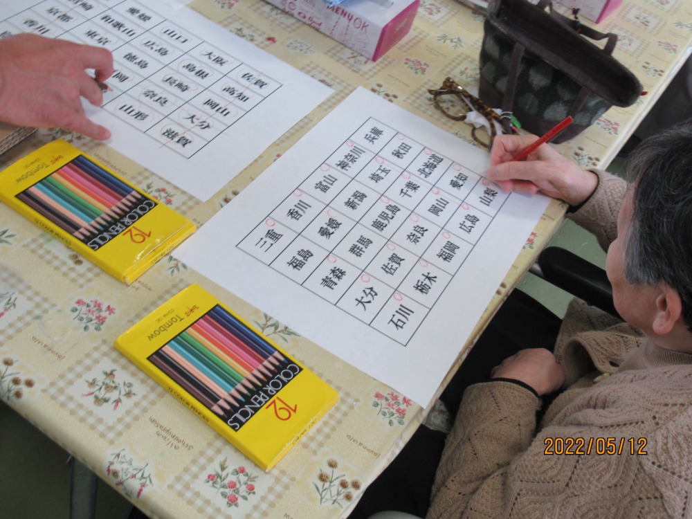 今日のレクリエーションは都道府県ビンゴでした😊 言って欲しい都道府県が来ない… なかなか揃わないのが…